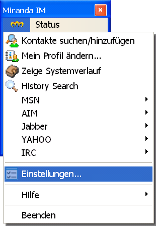 Wenn für Miranda noch nicht die deutsche Sprachdatei installiert ist, dann kannst Du dies jetzt erledigen. Sollte Miranda schon gestartet sein, schließe es vor dem nächsten Schritt. Nun speichere bitte die in dieser ZIP-Datei enthaltene deutsche Sprachdatei im Installationsverzeichnis von Miranda (bei einer Standard-Installation ist dies C:\Programme\Miranda IM).