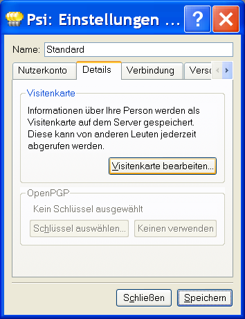 Jetzt ist es Zeit, Dein Jabber Profil mit Daten zu füllen. - Dazu klicke auf die Registerkarte Details und darin auf Visitenkarte bearbeiten.