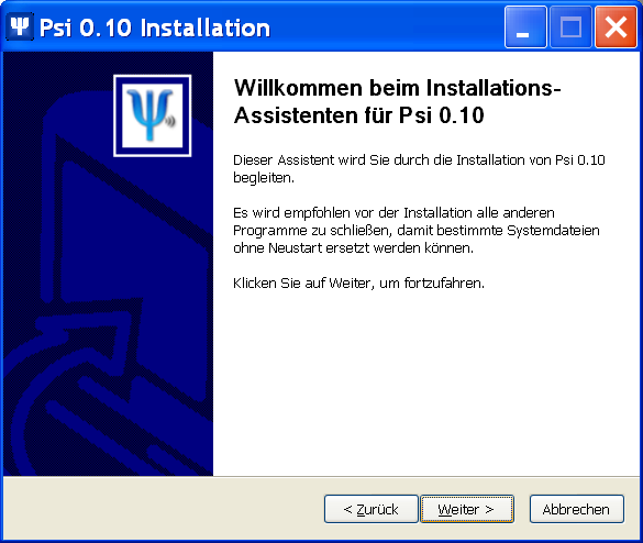 Bitte lade das deutsche Sprachpaket herunter und speichere es im Installationsverzeichnis von Psi (bei einer Standard-Installation ist dies C:\Programme\Psi).