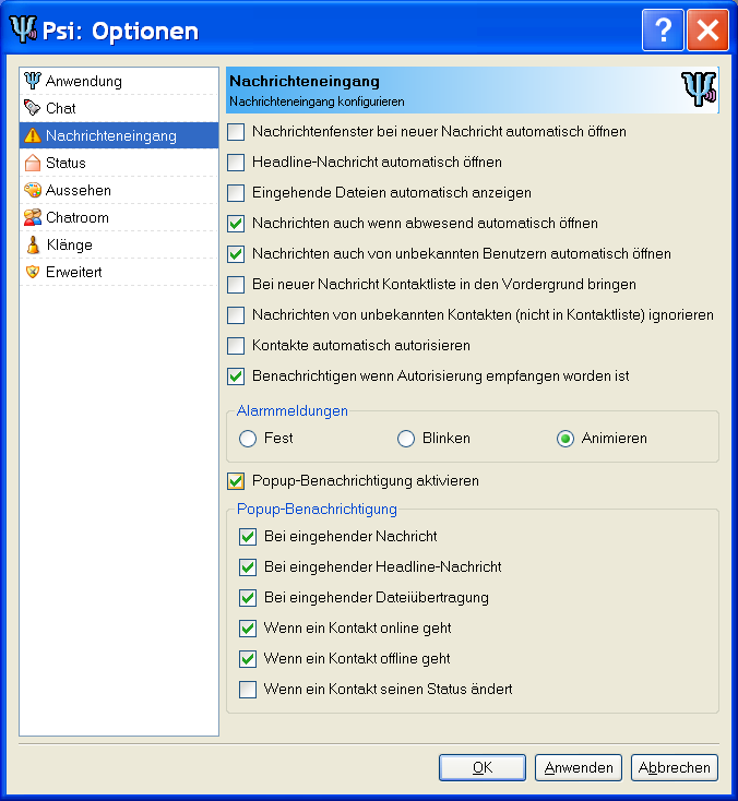 So, und nun kannst Du Dich in Psi umsehen und nach Lust und Laune herumprobieren und verschiedeme Optionen testen.